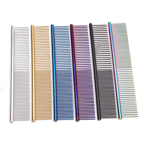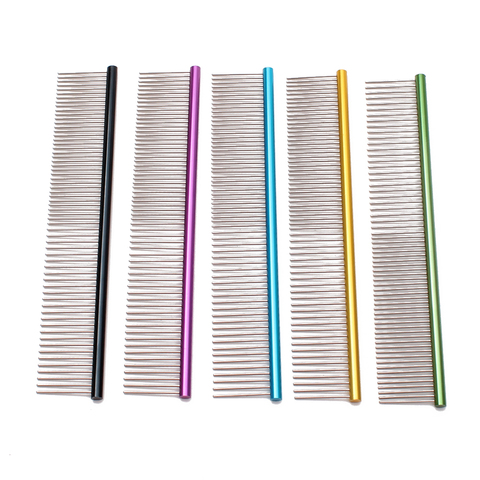 Peine colorido de acero inoxidable para perros y gatos, peine para mascotas, fila de dientes, aguja, cortador de pelo, peine de aseo C6703