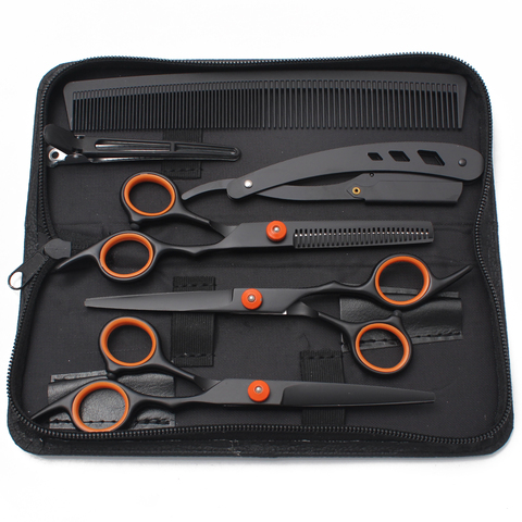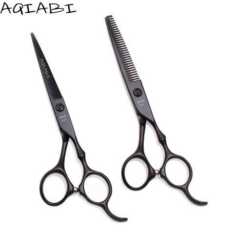 Kuaförlük makas 5.5 ''6" AQIABI JP çelik berber inceltme makasları saç kesme makas saç makas Salon siyah A9030
