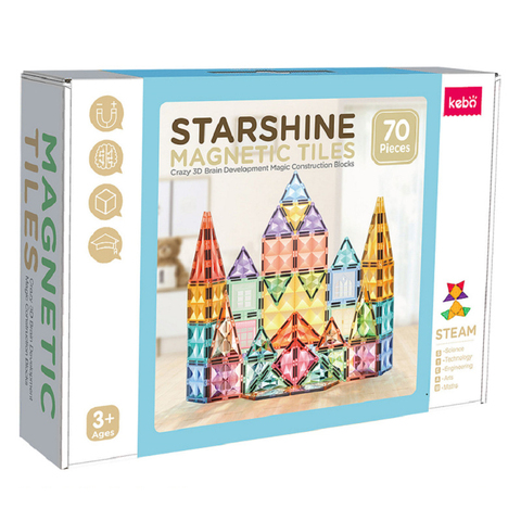 Kebo 70Pcs/Box Magnetic Tiles Block Set Diamond Facet STEM Educational Toys for Kids Magnetic Toys Made of Plastic
