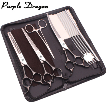 דרקון סגול כלב מספריים ערכת 6.5 "7" יפן שיער נירוסטה טיפוח מחמד גריסים ישרים ישרה מספריים דילול שחור Z3098