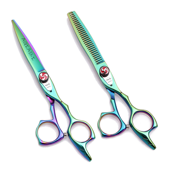 מספריים 5.5 "6" aqabi יפן חיתוך שיער נירוסטה מספריים דילול מספריים דילול ירוק a9017