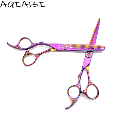 Sol el profesyonel berber makası 5.5 ''6" japonya paslanmaz saç kesme makası inceltme makasları saç makas mor A8001